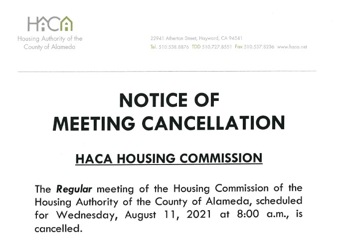 « All Events This event has passed. CANCELLED: HACA HOUSING COMMISSION MEETING August 11, 2021 @ 8:00 am - 9:00 am « Housing Commission Regular Meeting No HACA Services Available on Labor Day » Add to calendar Google Calendar iCalendar Outlook 365 Outlook Live Details Date: August 11, 2021 Time: 8:00 am - 9:00 am