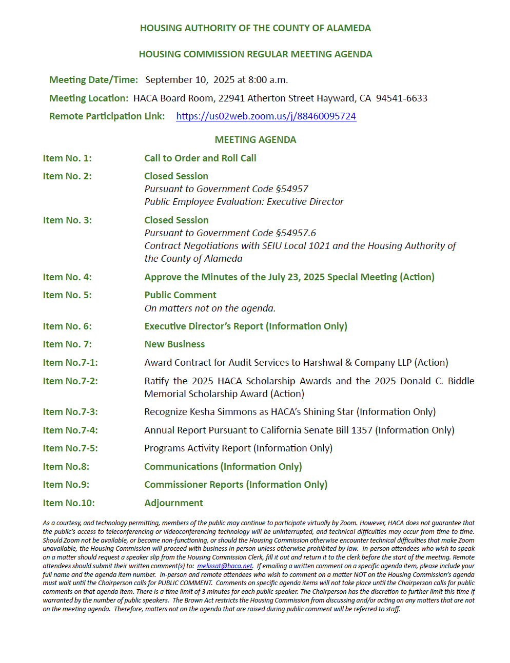 « All Events This event has passed. Housing Commission Regular Meeting September 10 @ 8:00 am - 9:00 am « Office Closed – Labor Day Holiday Office Closed – HACA is closed every other Friday » Add to calendar Google Calendar iCalendar Outlook 365 Outlook Live Details Date: September 10 Time: 8:00 am - 9:00 am