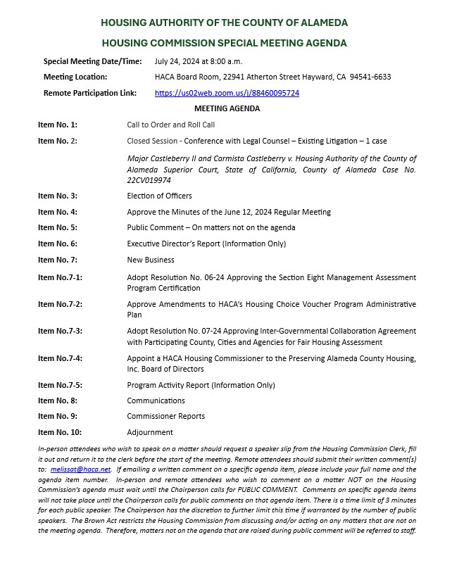 « All Events This event has passed. Special Housing Commission Meeting July 24, 2024 @ 8:00 am - 9:00 am « Office Closed Office Closed » Add to calendar Google Calendar iCalendar Outlook 365 Outlook Live Details Date: July 24, 2024 Time: 8:00 am - 9:00 am